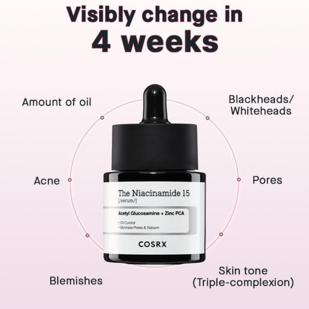 This serum contains 15% niacinamide, which is quite a high concentration. COSRX says it helps with: