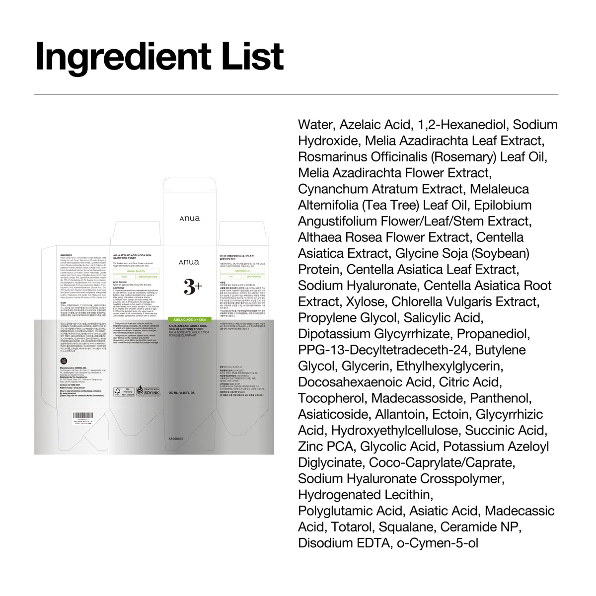 Anua Azelaic 3 Cica Skin Clarifying Toner – 250 ml