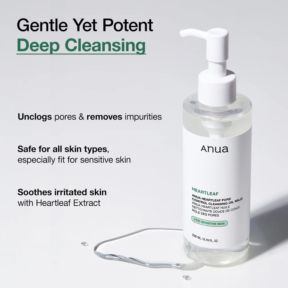 Introducing the Anua Heartleaf Pore Cleansing Oil Mild — the gentlest way to double cleanse your skin. Specially formulated for sensitive and dry skin types, this mild cleansing oil effortlessly dissolves stubborn makeup, sunscreen, and daily impurities without causing irritation or stripping your skin’s natural moisture barrier.