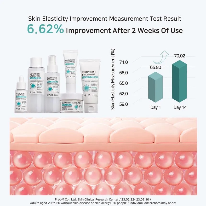 - Enriched with Glutathione Niacinamide and Centella Asiatica to increase skin elasticity while soothes irritated skin.