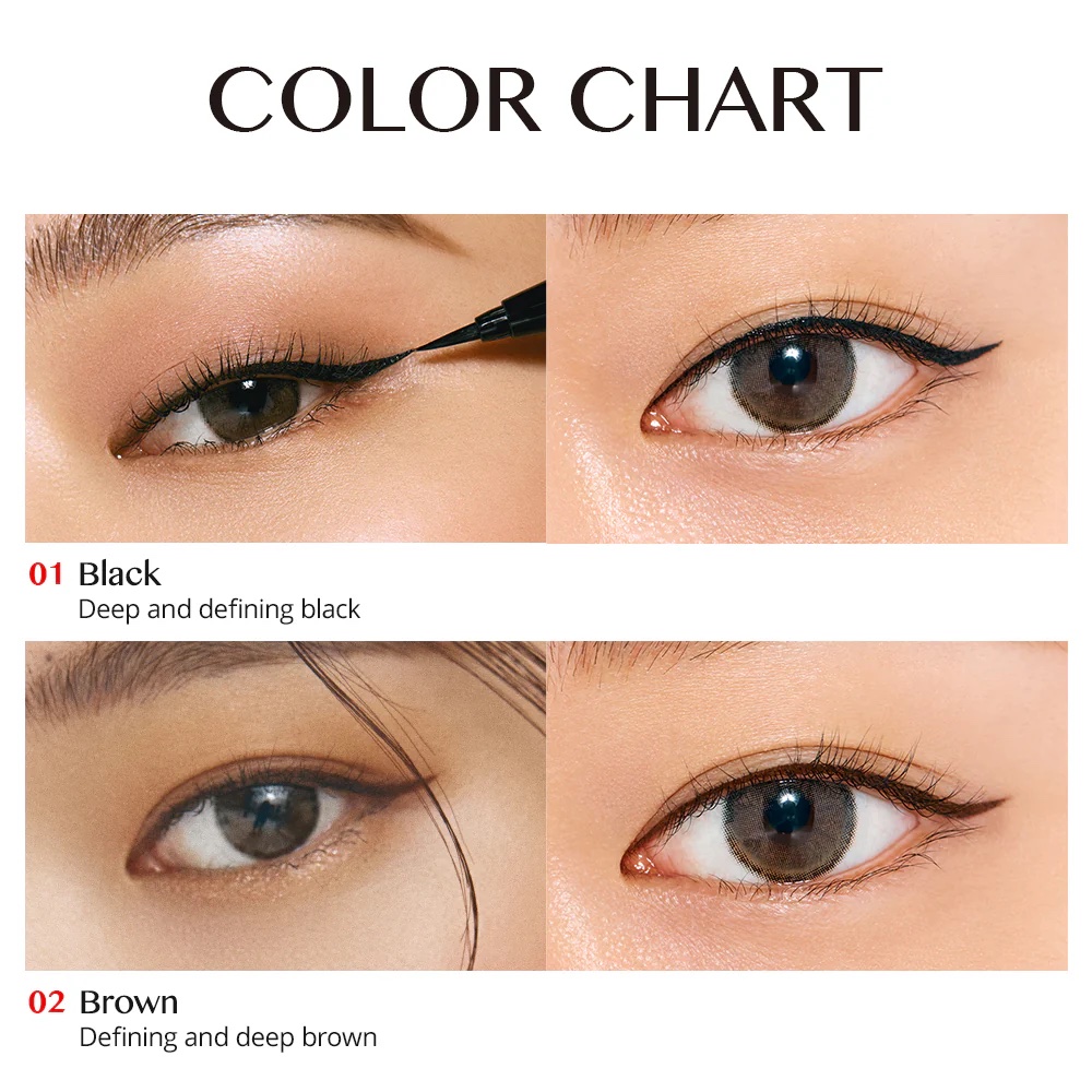 The highly pigmented ink formula glides smoothly across the lash line and dries quickly, giving you intense color payoff without skipping. Thanks to its special coating technology, the liner is resistant to water, sweat, and oil, helping prevent smudging throughout the day.