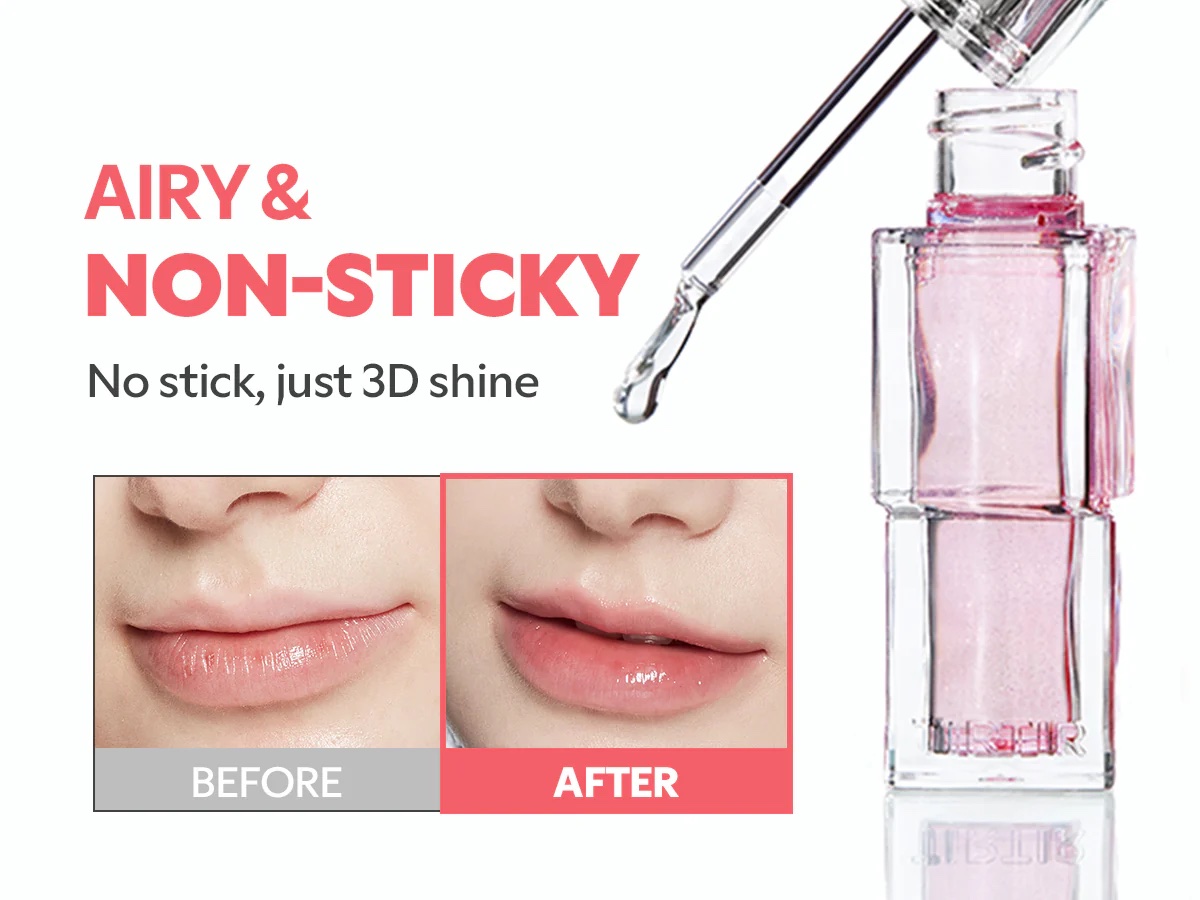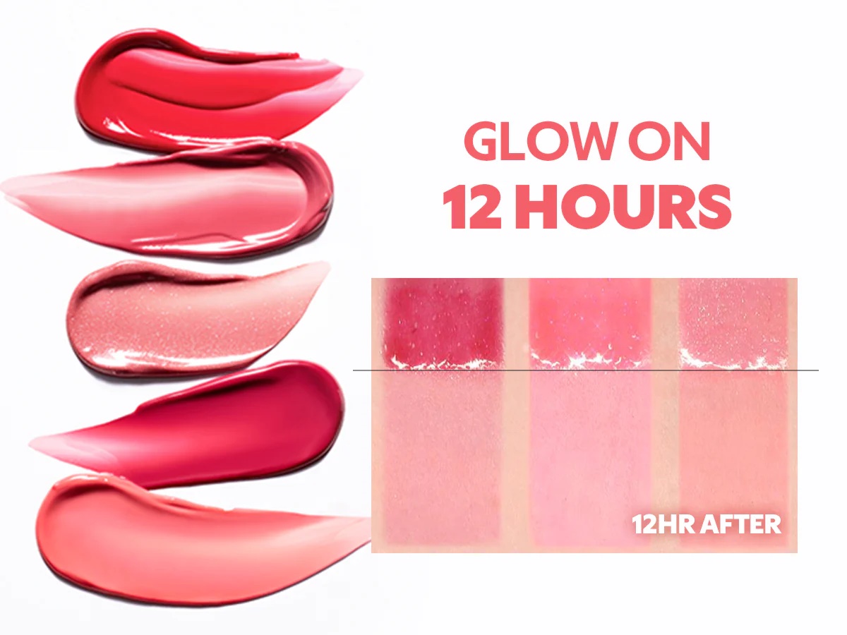 This tint coats the lips with a water-like glow finish, giving a fresh, plump look without feeling sticky or heavy. It adds a natural wash of color while keeping the lips smooth and radiant.