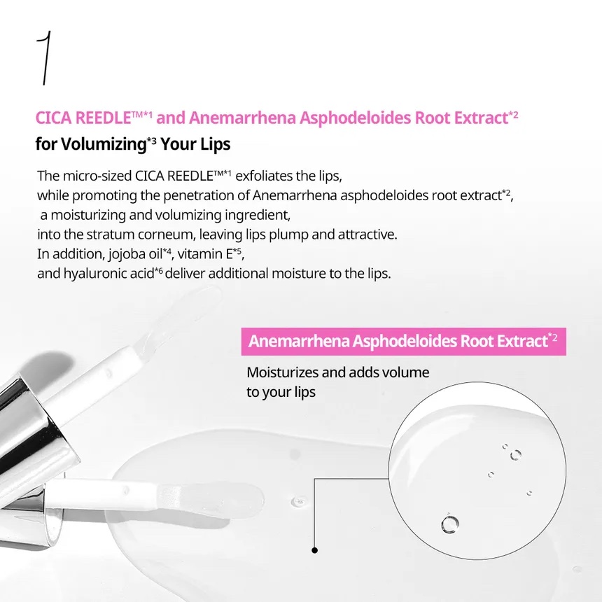 Perfect your pout with VT’s Reedle Shot Lip Plumper! Bringing the brand’s signature CICA REEDLE microneedling treatment to lips, this glossy VT lip plumper is infused with anemarrhena asphodeloides root extract – the hero herbal ingredient in Volufiline – to moisturize and volumize lips. Hydrators like CICAHYLON™, jojoba oil, Vitamin E and hyaluronic acid keep your smackers plump, happy and shiny.